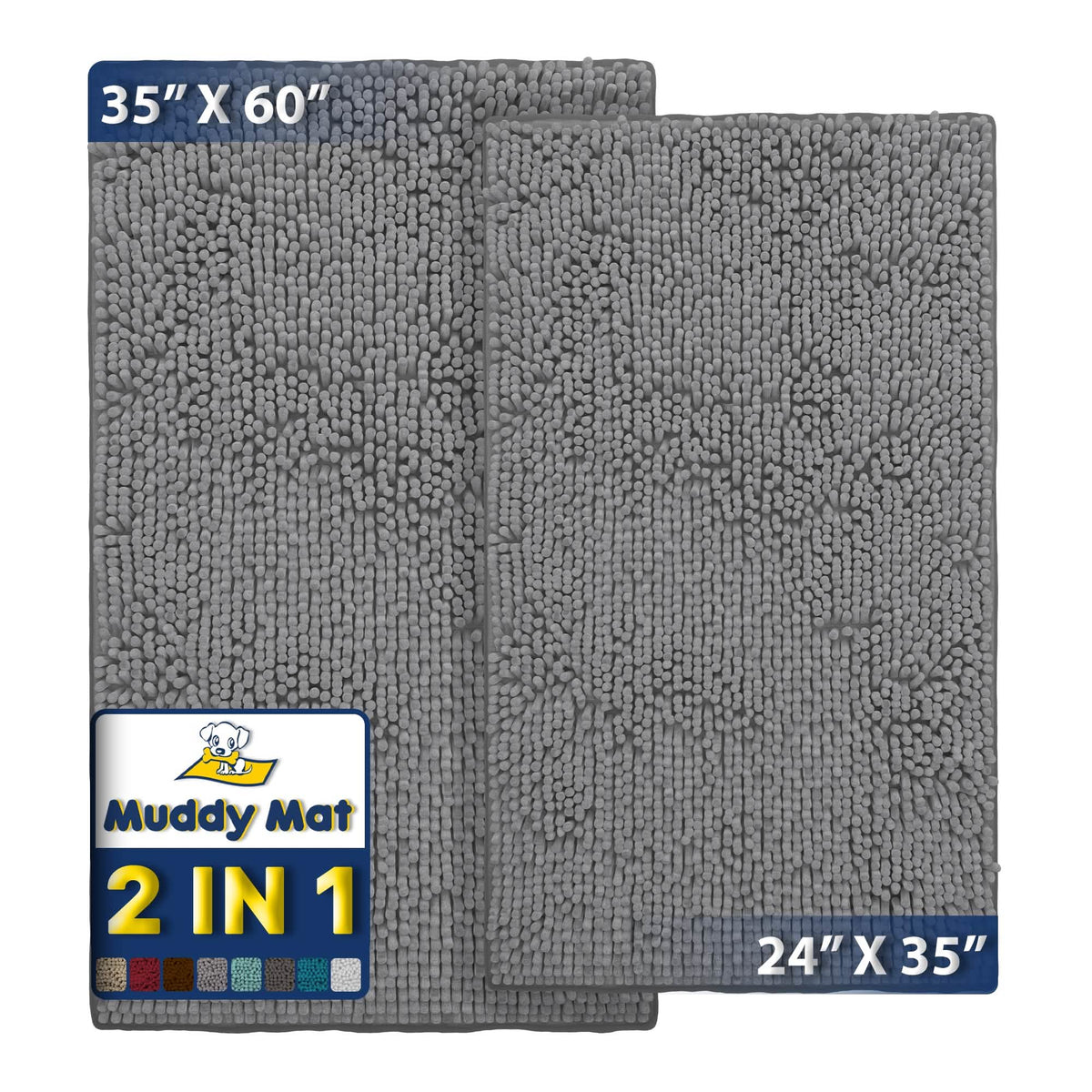 Muddy Mat® is a super absorbent microfiber dog door mat for muddy paws, featuring a non-slip backing, quick-dry chenille fabric, and a machine-washable design. This entryway carpet is perfect for indoor and outdoor use as a durable and washable pet rug.
