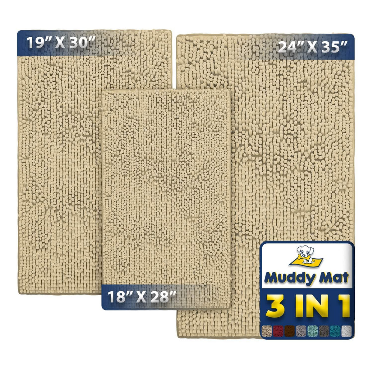 Muddy Mat® is a super absorbent microfiber dog door mat for muddy paws, featuring a non-slip backing, quick-dry chenille fabric, and a machine-washable design. This entryway carpet is perfect for indoor and outdoor use as a durable and washable pet rug.