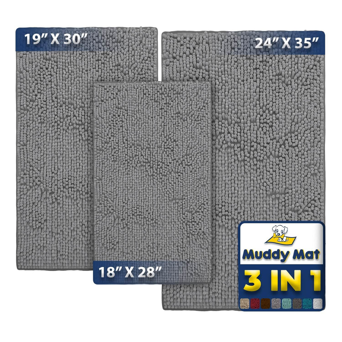 - Bundle Includes: (1x) 18”x28”, (1x) 19”x30” & (1x) 24”x35” Muddy Mats